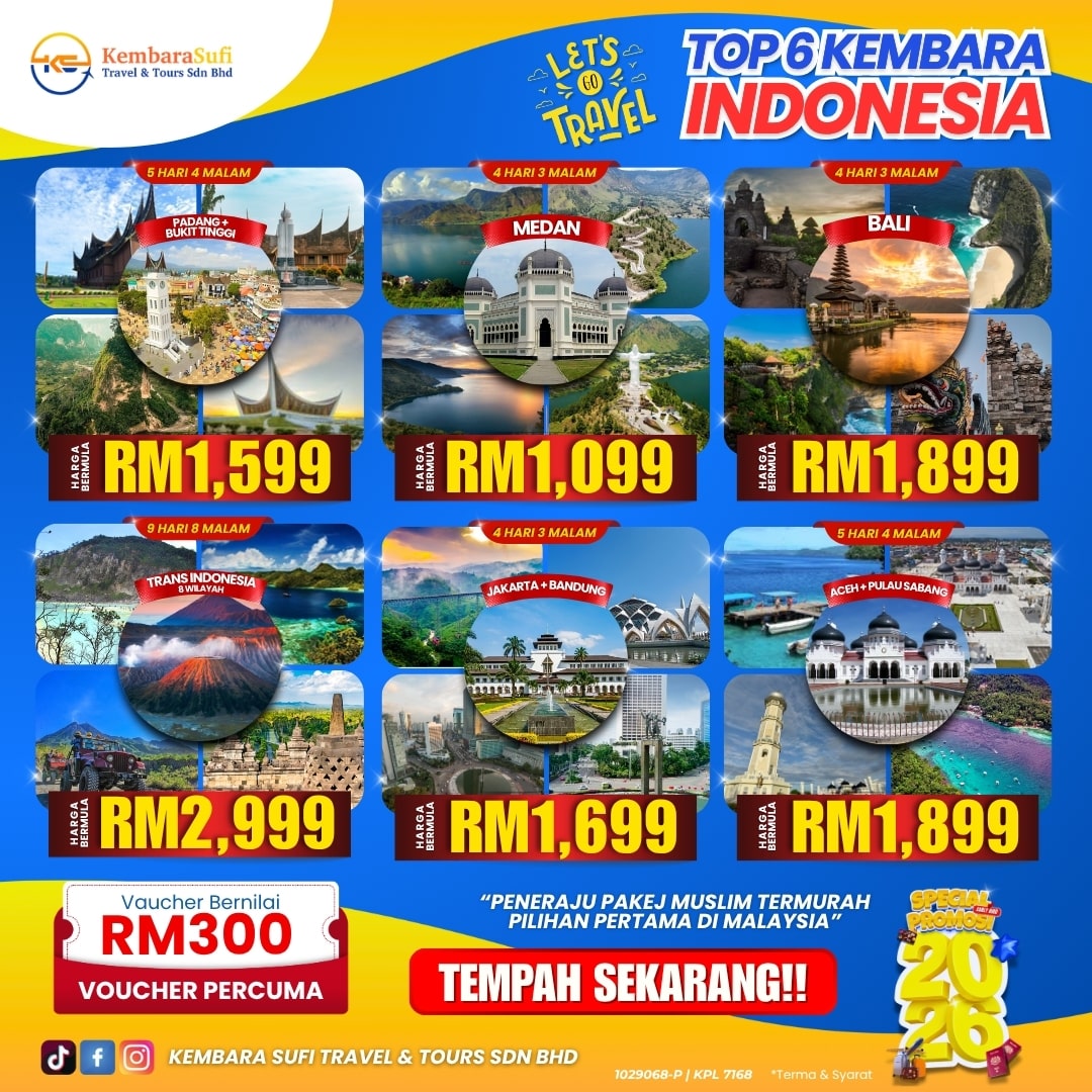 Kami merupakan jenama di bawah syarikat Kembara Sufi Travel & Tours Sdn Bhd yang merupakan agensi berdaftar dengan nombor pendaftaran MOTAC (KPL 7168) dan SSM (1029068-P).